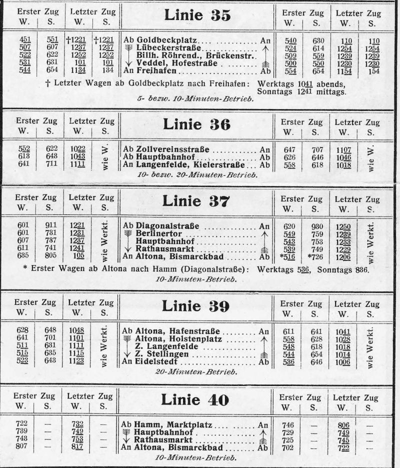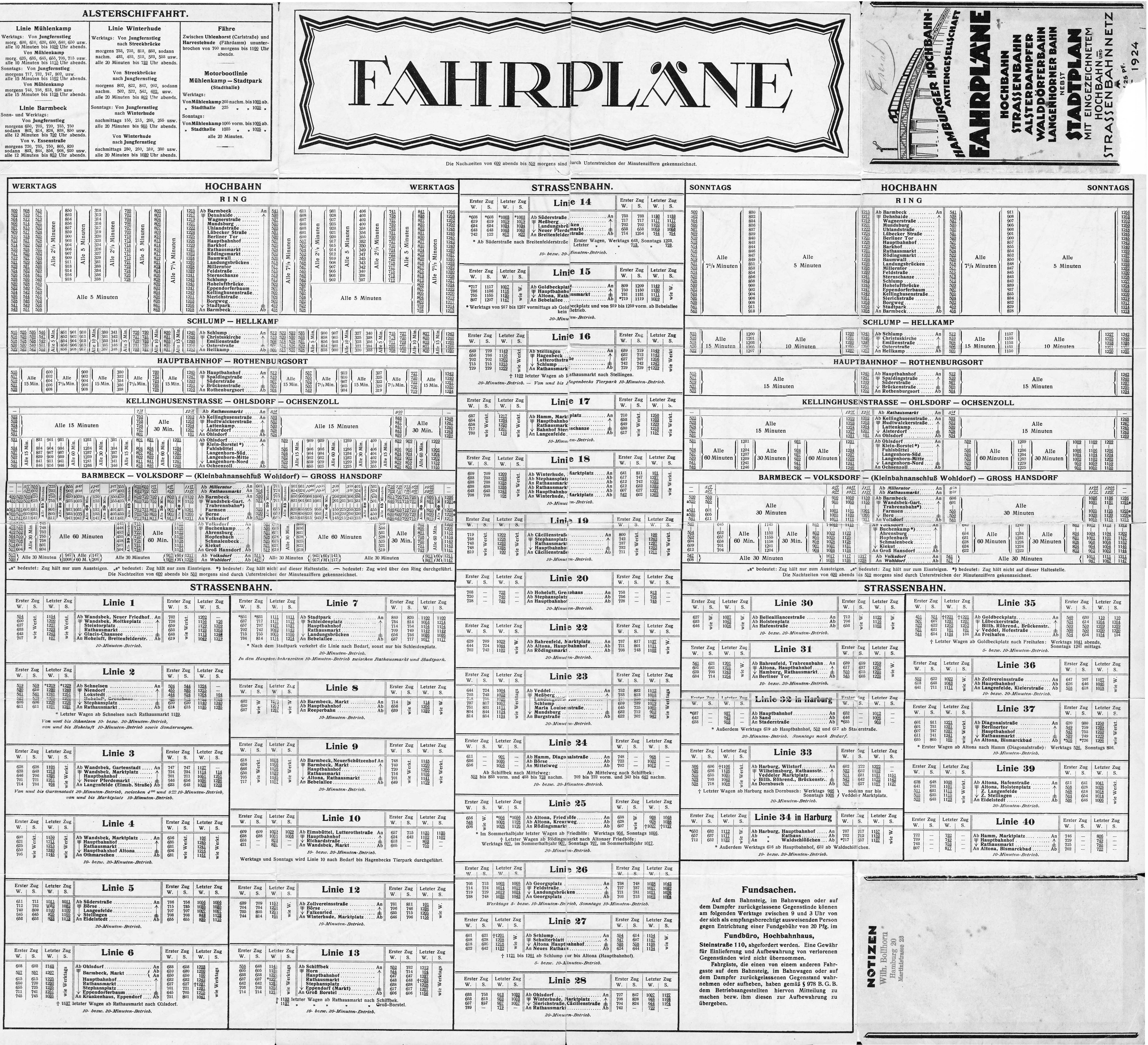 Auf dieser Gesamtseite sind außer den Fahrplänen der Staßenbahnlinien auch die der Hochbahnlinien und