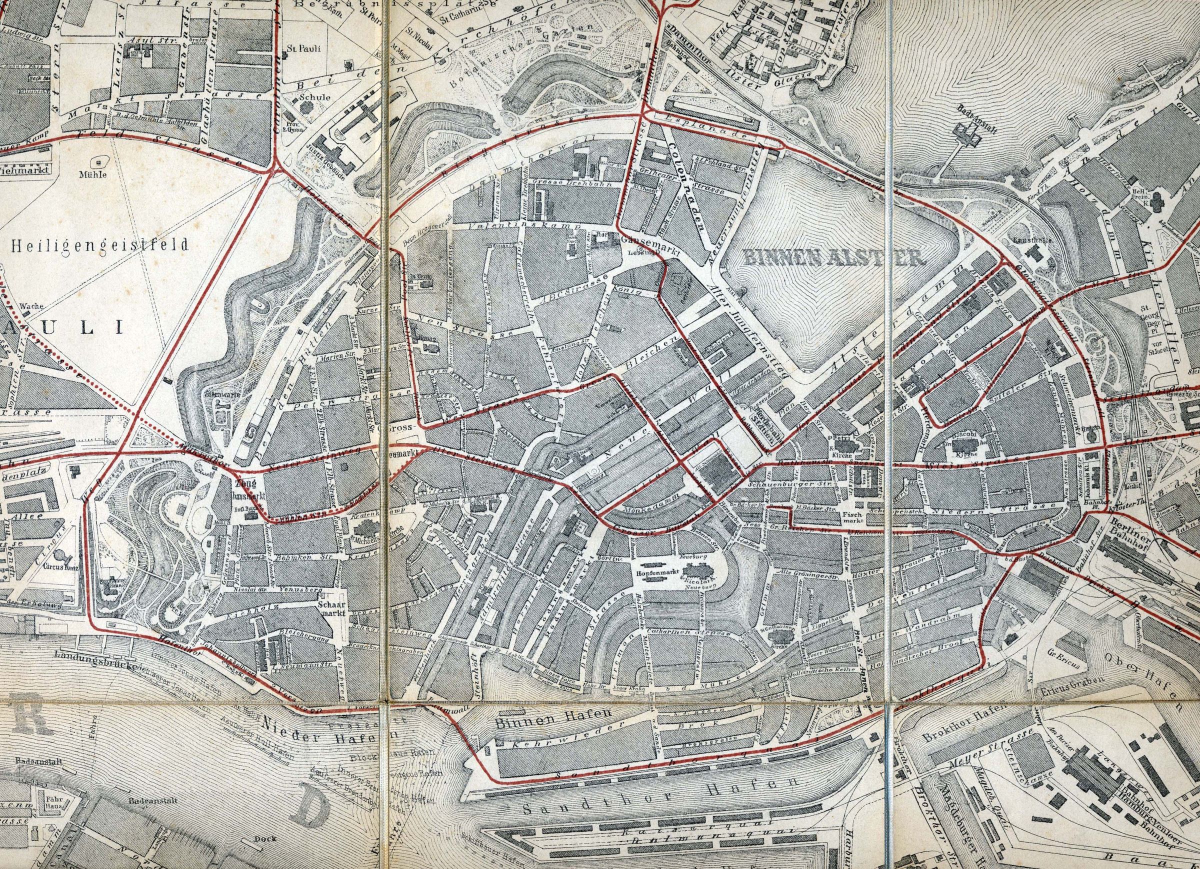 erst 1892 durchgebrochen wurde macht die 2. Linie nach Eimsbüttel ihre Schlenker durch die Neustadt.