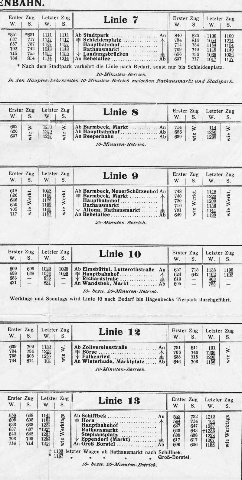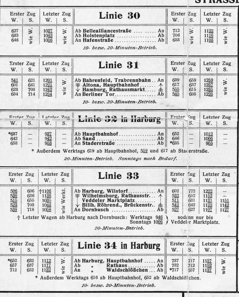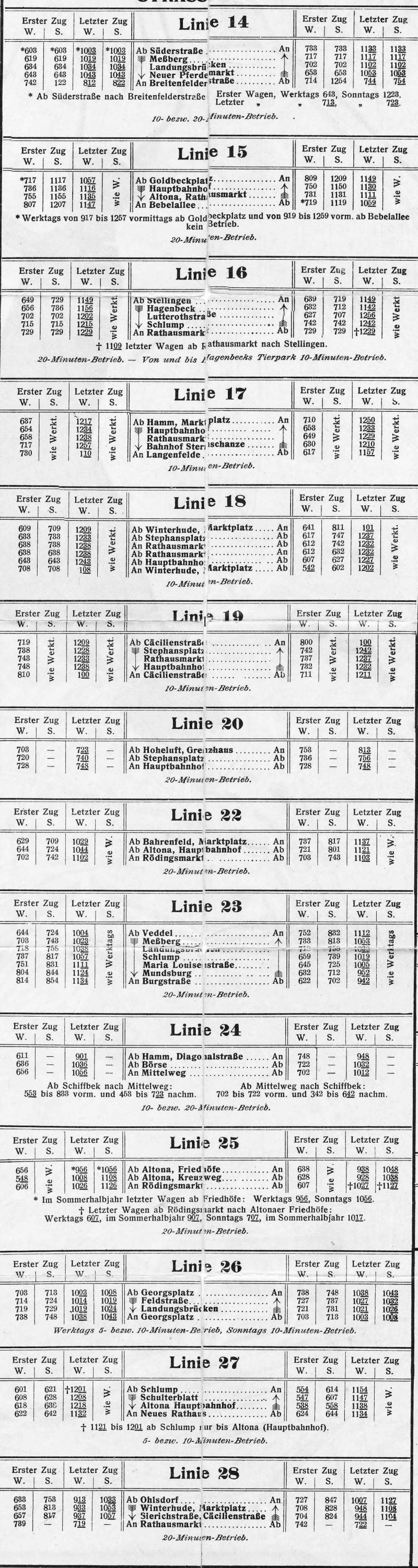 Auf dieser Gesamtseite sind außer den Fahrplänen der Staßenbahnlinien auch die der Hochbahnlinien und
